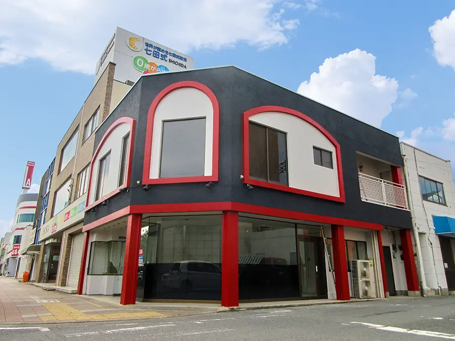 これまでの白い壁面から、黒を基調とし赤いアクセントの入った建物へと生まれ変わりました。